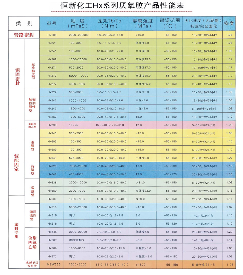 厌氧胶型号及使用性能说明